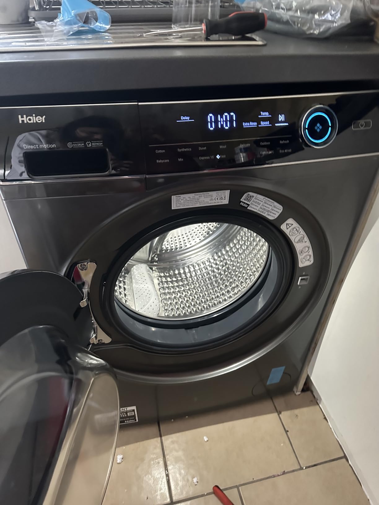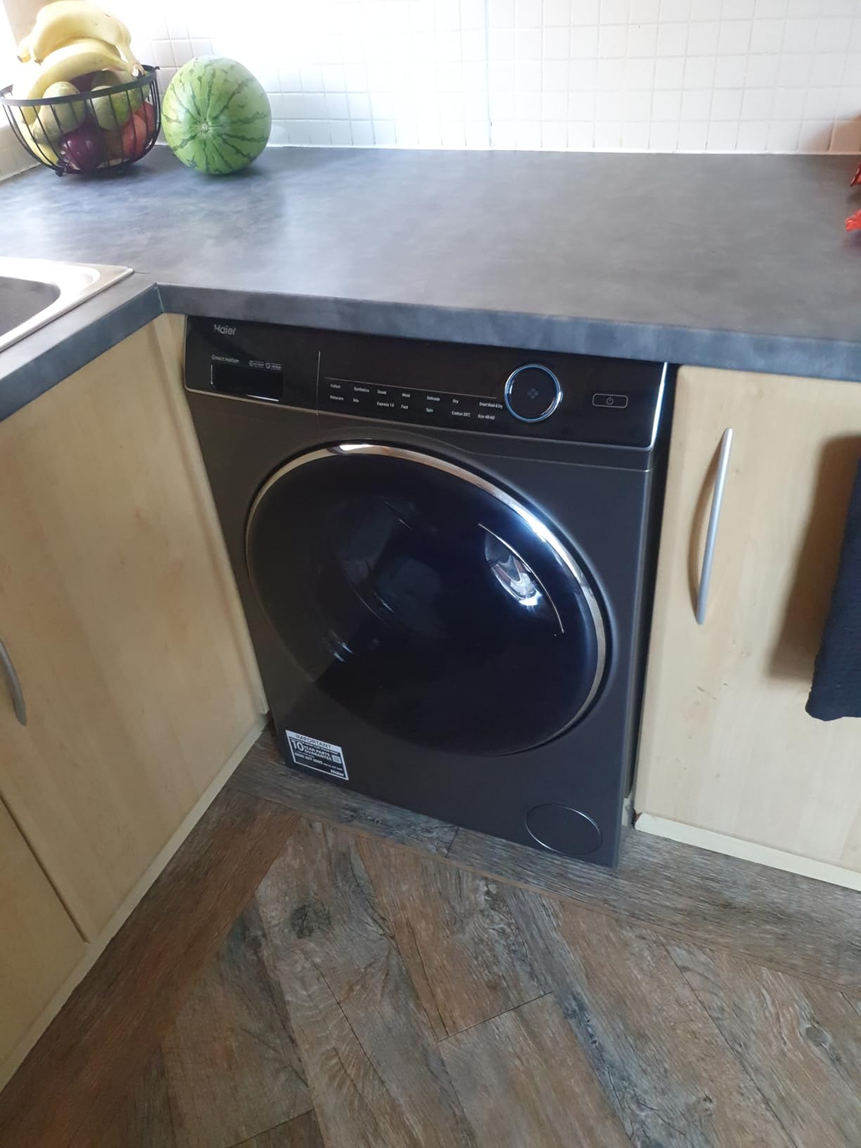 The Simple is one of the best washing machines I have ever used. We love spending time in the kitchen and this machine is so quiet it's almost unbelievable. I was lucky enough to own an LG direct drive washing machine in a previous rental and was very impressed, I hadn't really heard of Haier but I thought I'd give it a try, first and foremost if you've never owned one A Washing Machine Washing Machine Direct Drive Washing Machine If you are looking for a new washing machine, then this must be your first choice. It's so quiet, with almost no vibration or rumble throughout the cycle, that we could easily have a normal conversation while sitting in the kitchen. The machine itself looks great, the controls are simple and intuitive, has everything you need, and the drums are the perfect size. The LED illuminated drum is great too, very handy for spotting the odd lost item hiding behind while emptying, and overall makes the unit look more premium. It's also very narrow in depth which makes installation very easy and we don't have a lot of space so it's much better than our old one. As you'd expect, it cleaned our clothes perfectly, but to be fair, most washing machines can do that. It definitely has a faster cycle time than our old machine which is another huge benefit and I like how you can adjust the cycle time as needed. While I haven't really heard of the Haier, overall this is a great alternative to the LG Direct Drive that offers some great unique features. We've been using it for two weeks now and I wouldn't hesitate to recommend it, it's worked great so far and hopefully we'll have many years of happy washing.
