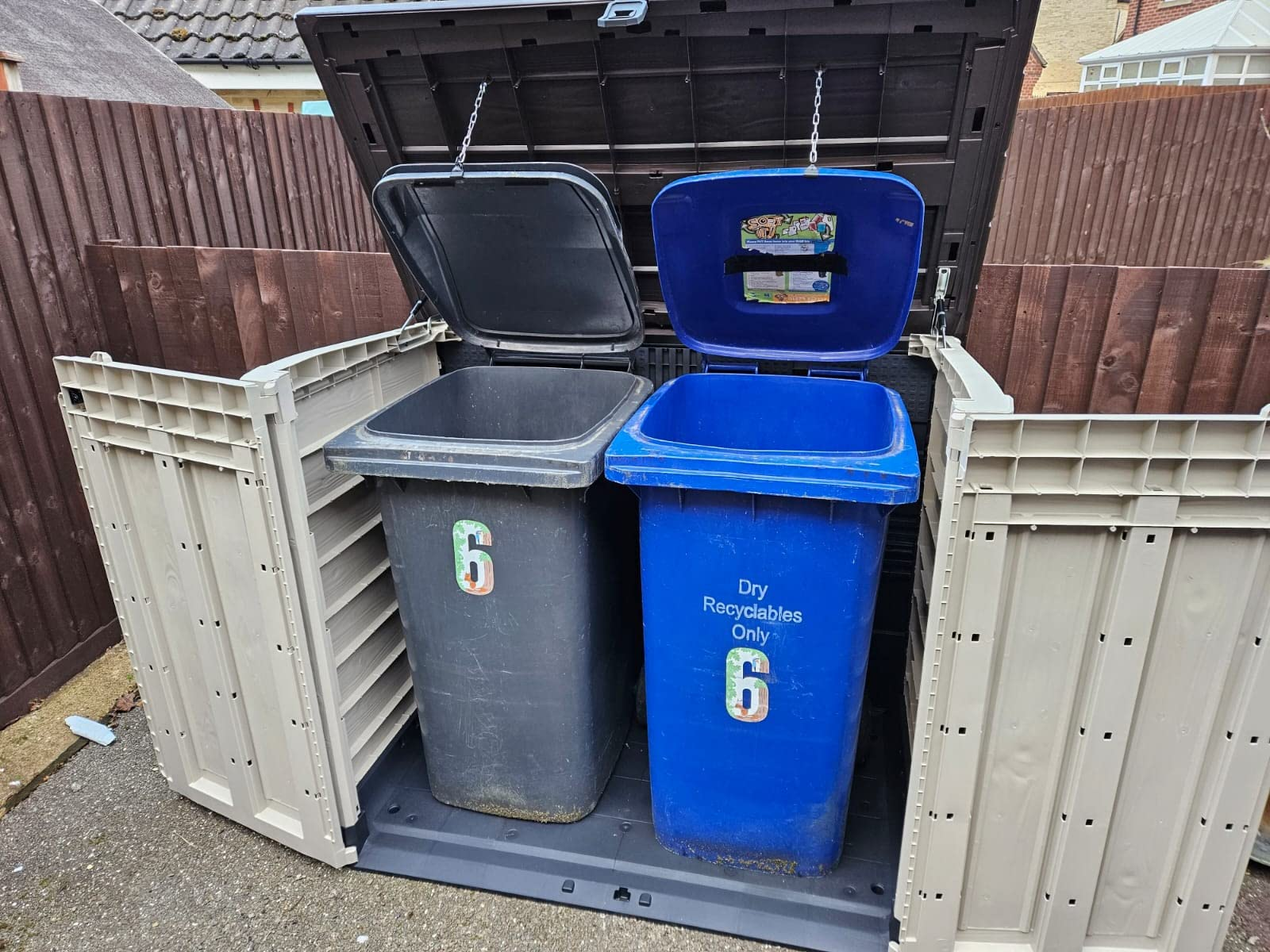 Hydraulic pistons for easy access and a bin-opening kit that lets you open your wheelie bins just by lifting the lid.